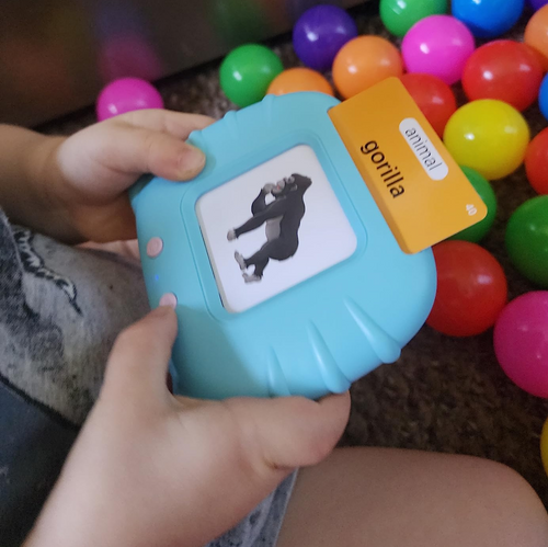 My 18-month-old is obsessed with this toy!!! It is helping her learn so many words! We use the cards as flashcards and she loves putting them into the toy to hear the sounds! Excited to see how much she learns from this. 10/10 recommend!